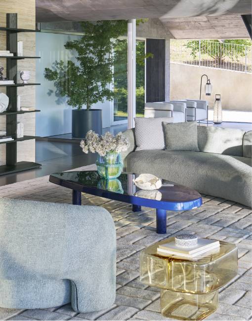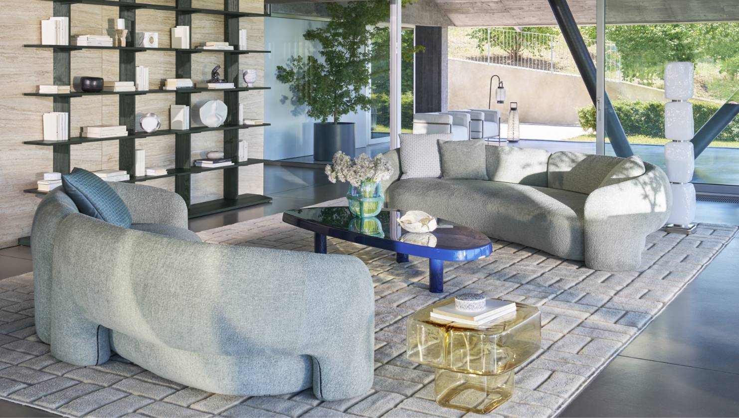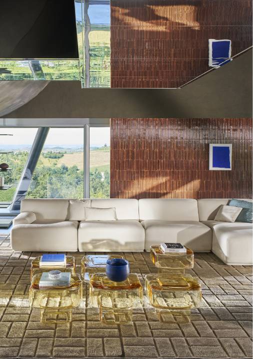 ヴィコ・マジストレッティがデザインした<FIANDRA>ソファによるリビングシーンを中心に、