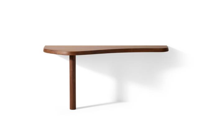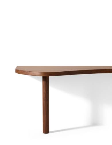 このコンソールは、木材の豊かな素材感を際立たせる独特の建築的美しさを備えています。フォルムは徐々にボリュームを増しながら、彫刻的な天板が描くのは、わずかに傾斜が変化する非対称で緩やかな波形。
