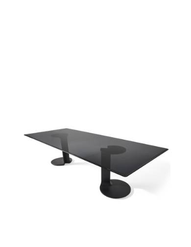 アルミニウムの重厚感とガラスの透明美が響き合う、建築彫刻のような存在感を放つテーブルです。各構造要素が互いに組み合わさり、一体となることで生まれる美しさ。