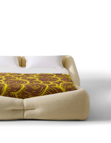 豊かなボリュームと流れるような曲線で、包み込まれる安らぎを表現したベッド。その名が示す“巣”のような快適さを称えながら、機能性とディテールへのこだわりを融合しました。