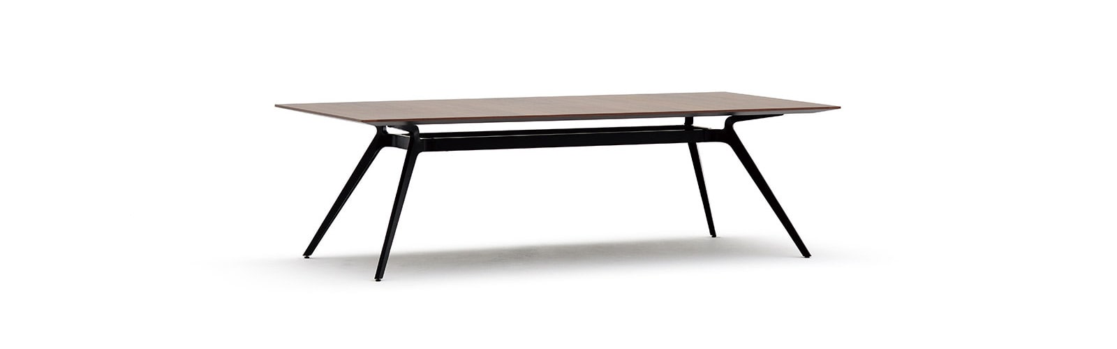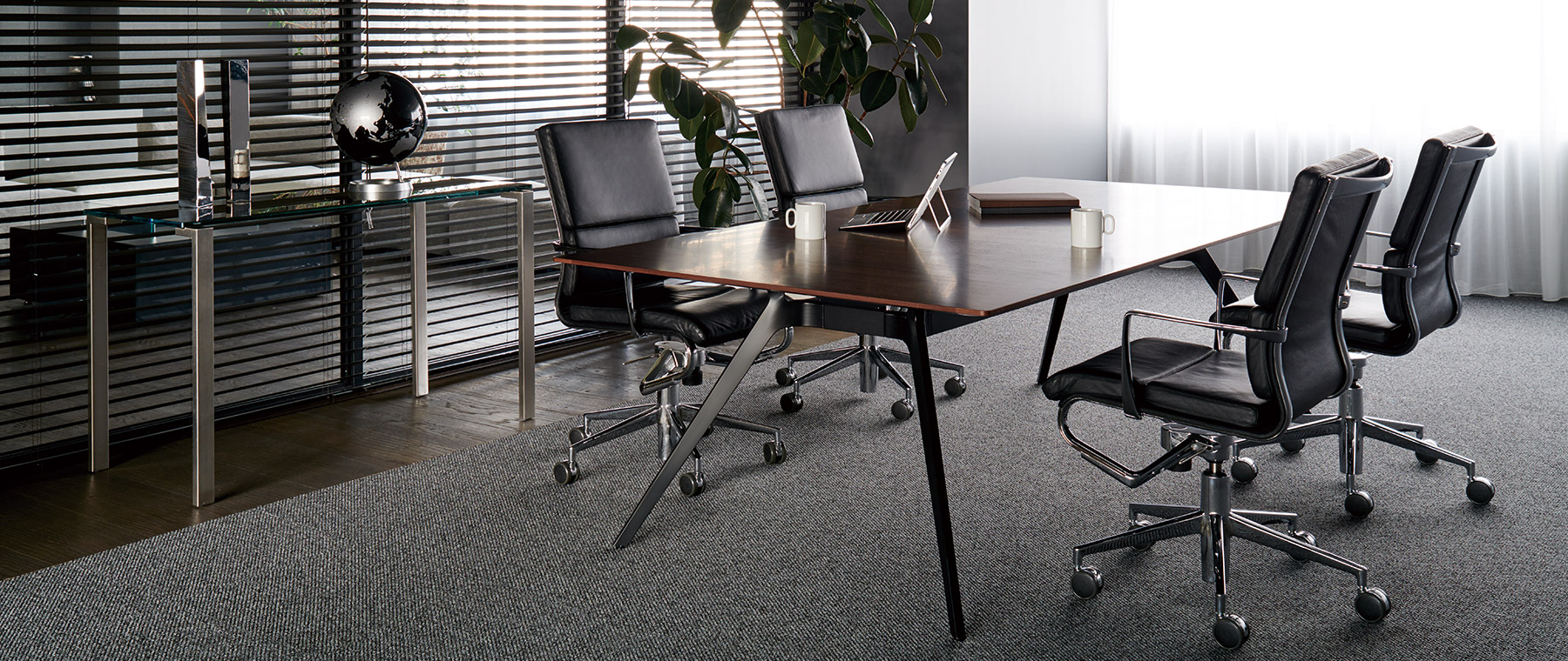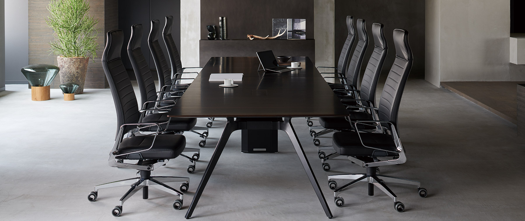 デザインはミニマムでありながらミーティングテーブルとして最大限の機能や表現力を発揮するというコンセプトで考えられました。 デザイナーであるロドリゴ・トーレス氏のあらゆる思考、感情、経験が結びついて生まれたデザインであり、オリジナルのアイディアは彼の幼い息子が庭の木で遊んでいる様子をスケッチしている際に思いつきました。 強度の高いアルミニウム鋳造を用い、スマートでエレガントな脚部を実現。脚部のモジュールが全体のコアとなり、構造体、配線レール、意匠、強度の役割を同時に果たしています。JOY という名前は、この脚部を2つ並べると喜びに溢れる人のシルエットに見えるということに由来しています。