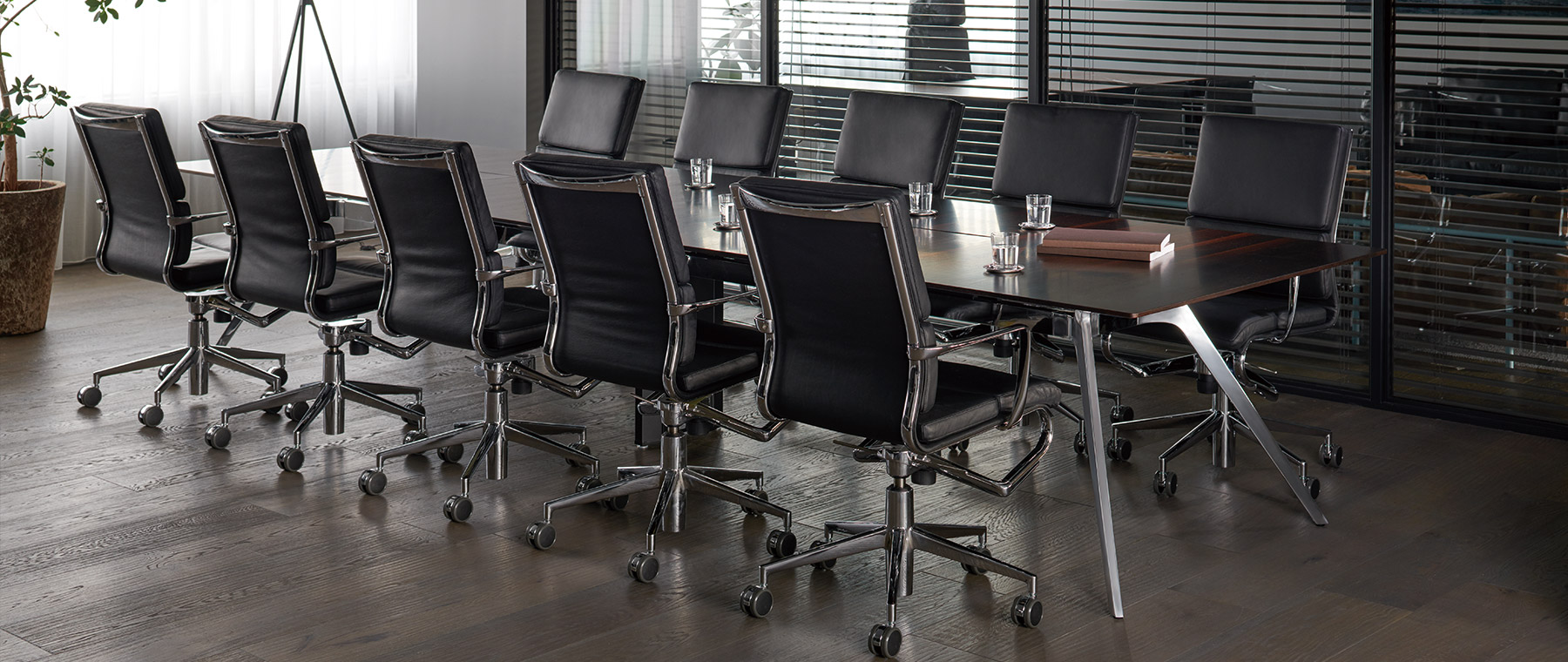 インタースツール社のコレクションの中でもハイエンドをターゲットとしたモデル、VINTAGE(ヴィンテージ)は、ロッキングチェアのようにシートシェルが人の動きに追従する機能を備え、長時間でも疲れることなくミーティングに集中できる快適なアームチェアです。このたび、クラシックカーの内装にインスパイアされたフラッグシップモデル「32V4」を追加しました。柔らかいシートに、縦ステッチを施したパンチングレザーが特徴です。