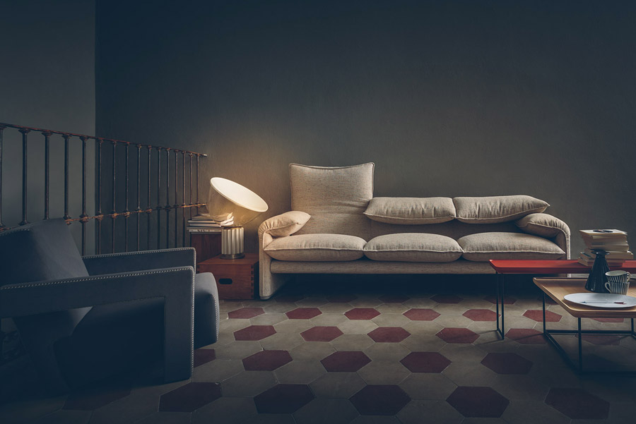 身体を優しく包み込むような座り心地と、一つのソファでハイバック・ローバックを使い分けられる機能性から、発表以来ベストセラーとして君臨し続けているマラルンガソファ。2014年に発売40周年を記念して発表された新たな仕様はエッジに上品なステッチが施されており、丸みのある優しい輪郭がパイピングによって強調され、より一層モダンで若々しい印象を与えます。布張りは新たにカバリング仕様が追加されました。