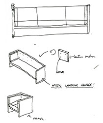 チッパーフィールドがixc.のためにデザインしたエアーフレームは、アルミハニカムパネルを採用したシリーズです。アルミハニカムは理想的な力学構造の一つで、量産性、強度、剛性に優れていることから、航空機の床、鉄道車両、バス、建材などに使用されており、その強度は25mm厚の合板と同等レベルです。ハニカムとはその名前の通り蜂の巣状に六角柱が集積されたものですが、円や五角形の場合は同じ形を並べてしまうと互いの間に隙間が生じてしまうのに対し、六角形は無駄な隙間が無く大きさや方向を均一にすることが容易。また、四角形の場合、隙間はできないものの斜めからの力に弱いという欠点がありますが、六角形は強度の面でも相当な力を確保することができ、伸縮やねじれにも強い構造です。