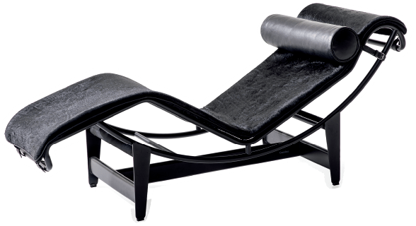1929年のサロン・ドートンヌで発表され「休養の為の機械」とル・コルビュジエが呼んだ寝椅子。体の線に合わせて綿密にデザインされた背のカーブと、弓形のパイプをずらすことによって寝る角度を自由に変えられることで、素晴らしい座り心地をもたらします。独創的かつ革新的でありながら優美なボディラインを持つこの作品は、90年以上経った現在でも世界一有名な寝椅子といわれており、20世紀を代表するマスターピースのひとつです。ブラックフレーム仕様が黒毛皮シートで再び登場しました。異素材を黒でまとめたモダンな逸品です。