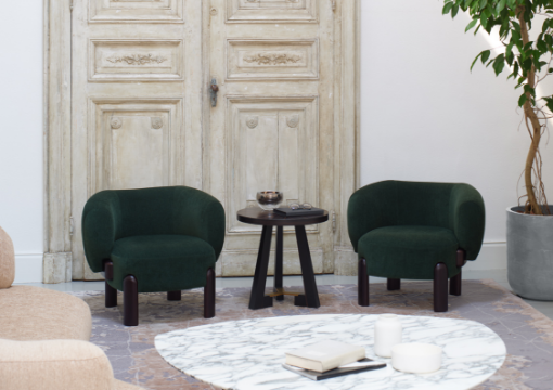 月のように様々な角度からその魅力的な個性を見せるラウンジチェア。