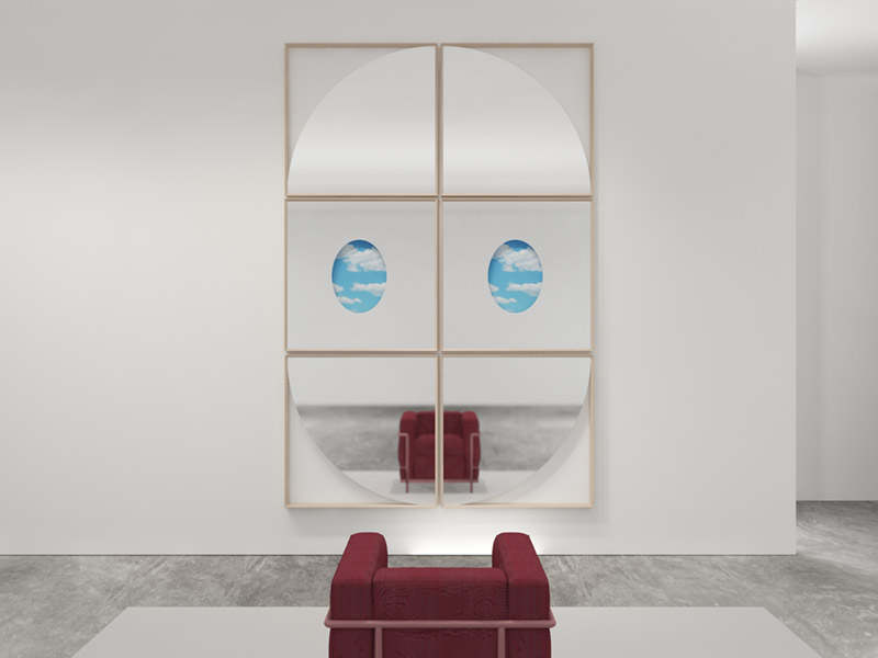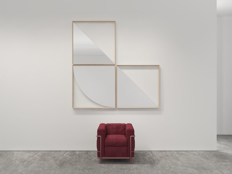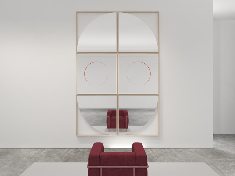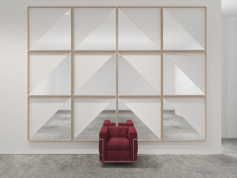 機能的にインテリアを装飾する、様々な形状のアート作品のようなミラーコレクション。2つのミラーから成り、2つの平面、2つの遠近感において、ジオメトリックな形状を映し出しています。この複雑な視覚的効果は見る角度によって異なる表情を見せ、変化するアートとしても楽しむことができます。既存の12種類のコレクションと複数枚組み合わせることで、より一層個性的に壁面を彩ります。