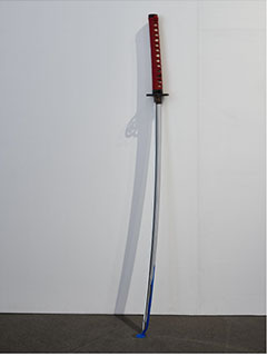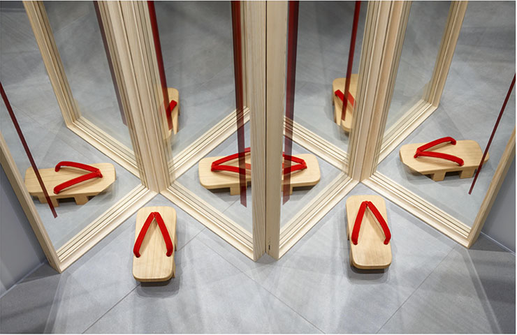 - 日本のエッセンスを取り込む、という作業の中でデリケートだったのが、今回のインスタレーションが、「私自身が考える日本文化」を取り込んでいるものの、自分はそこまで深く日本の文化的背景・歴史・物語を知らない。はたして日本人は、このインスタレーションを見て心地良いのか、不快なのかがわからなかった。例えば「刀」を展示するのは刀の一振りで切り裂かれたように見えるミラーの展示と関連づけた為であったが、これはともすれば西洋でいう「銃」を展示するようなもので、不快なのではないか・・・など。そういった部分が一番難しかった。