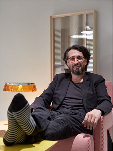 - 今回のインスタレーションを形にするにあたり、まず中心的なエレメントとしてミラーを据え、そこにFLOSの照明、さらにはCassinaのDNAの要素を入れ込む必要があった。