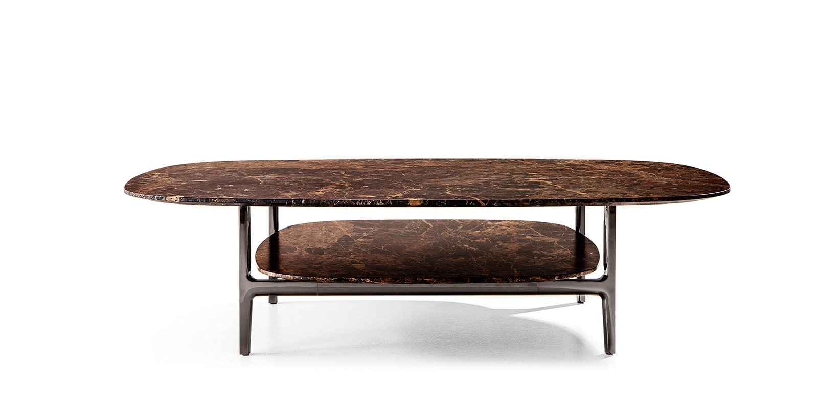 フィリップ・スタルクがデザインしたシステムソファVOLAGE EX-S(ヴォラージュ・エクストラソフト)に、ローテーブルのシリーズが加わりました。シンプルな1段、あるいは2段になったマーブルトップの2タイプをご用意。マーブルはホワイトカラーラ、ブラックマルキーナ、エンペラドール、グレーカルニコの4種類があり、ベースのフレームはソファと同様アルミポリッシュ、マットアントラサイト塗装、ガンメタル塗装の3種類からお選びいただけます。スタルクがデザインしたソファ、PRIVE(プリヴェ)やVOLAGE(ヴォラージュ)とも相性の良いデザインです。