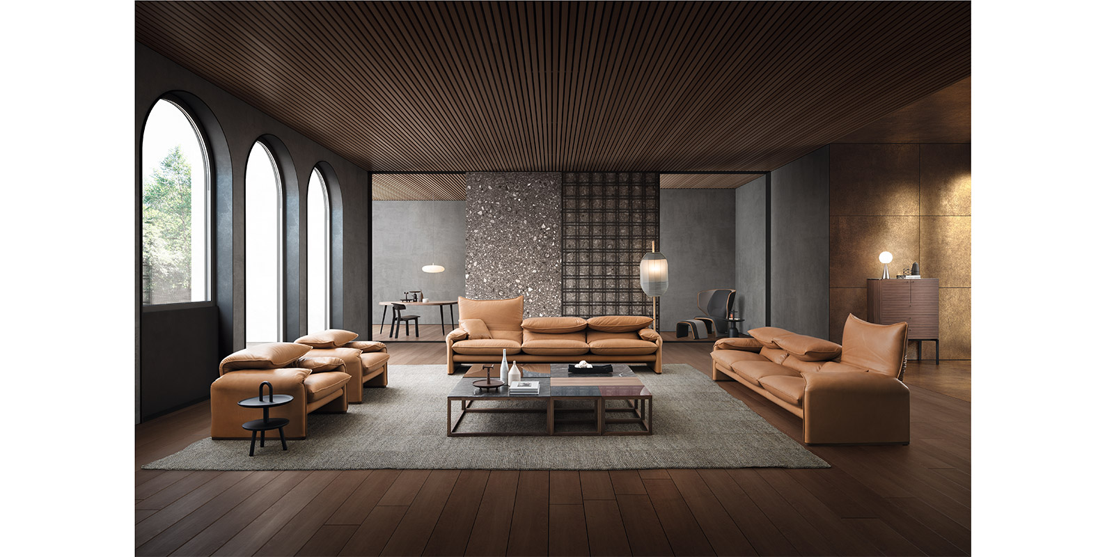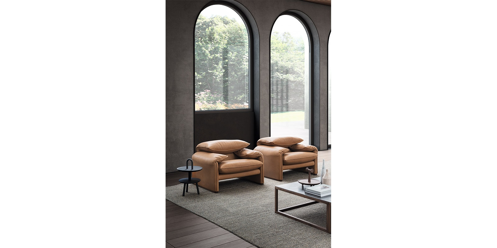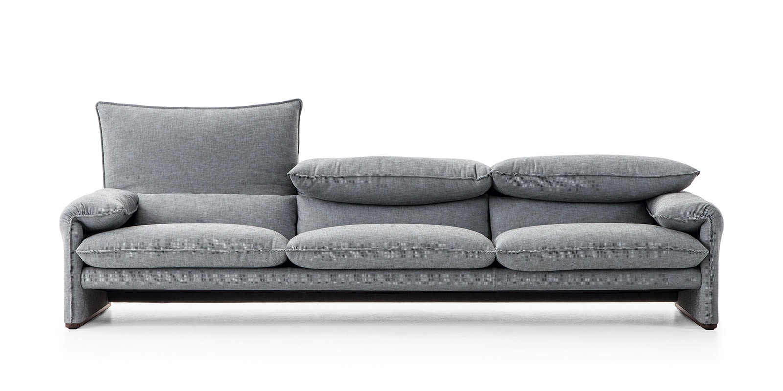 1973年の発表以来カッシーナのベストセラーであり続けるMARALUNGAソファ。発売40周年の際にはエッジにパイピングを施したMARALUNGA 40を発表し、デザインアイコンに新たな解釈を加えモダンでフレッシュな印象を与えました。このたび、より現代のライフスタイルに適応するよう、MALARUNGA 40 MAXIとして従来のサイズより幅が35%、奥行きが10%大きくなったニュージェネレーションが登場しました。多くの人に愛され続ける座り心地に加え、サイズが大きくなったことと背クッションが標準装備されることにより、その快適性を一段と高めています。