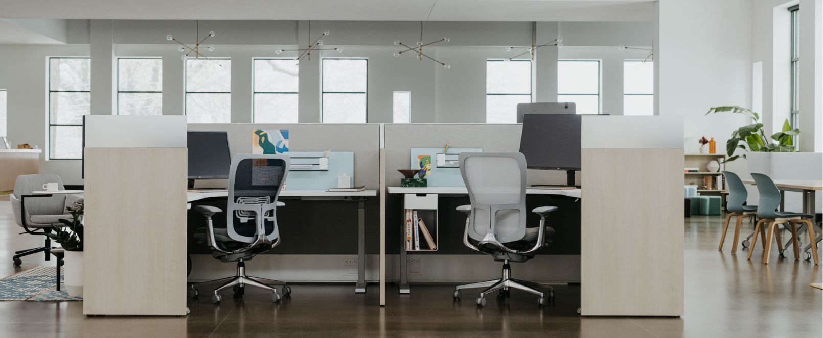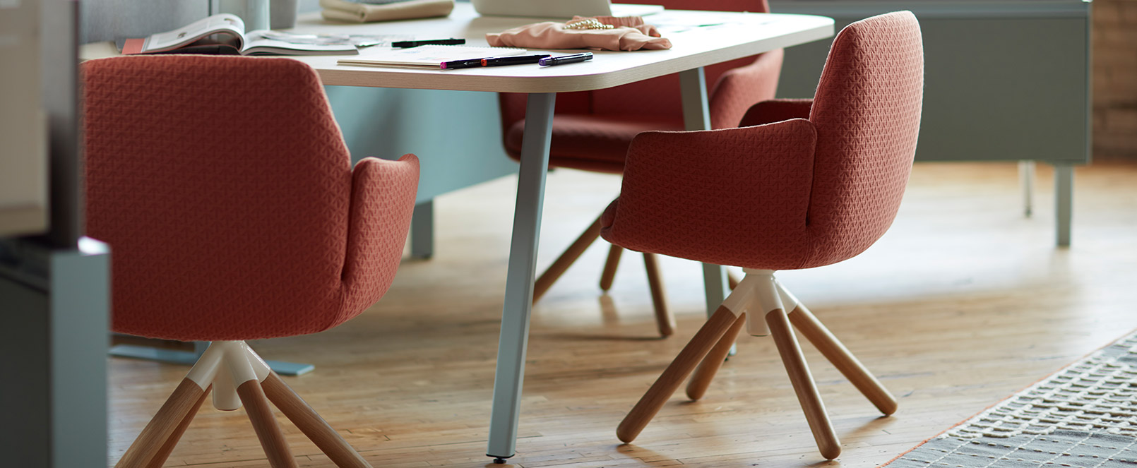 ヘイワースの家具は、オフィス空間だけでなく、インテリアとしての美しさにもこだわりがあります。シンプルでモダンなデザインが特徴で、上品な色使いや最高品質の基準を満たした素材の選定によって、耐久性を兼ね備え、どんなインテリアとも調和しやすいのが魅力です。クリーンなラインとミニマルなデザインを持ちながらも、豊富な素材とカラーバリエーションによって、温かみや個性を感じさせる空間づくりが可能です。