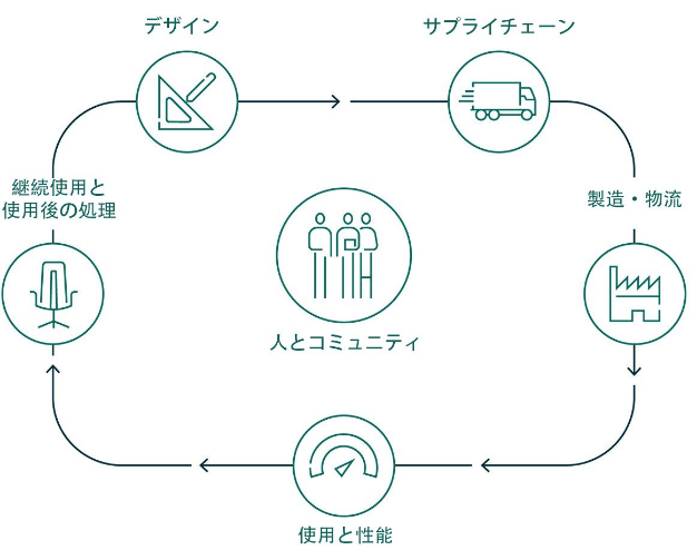 サーキュラーデザインコンセプトをすべての新製品開発へと統合することで、ヘイワースはデザインプロセス全体において「サステナブルな素材の使用、製品使用寿命の延長、製品寿命時の責任ある製品管理」という3つの基本原則を順守しています。