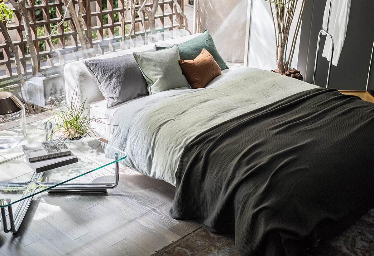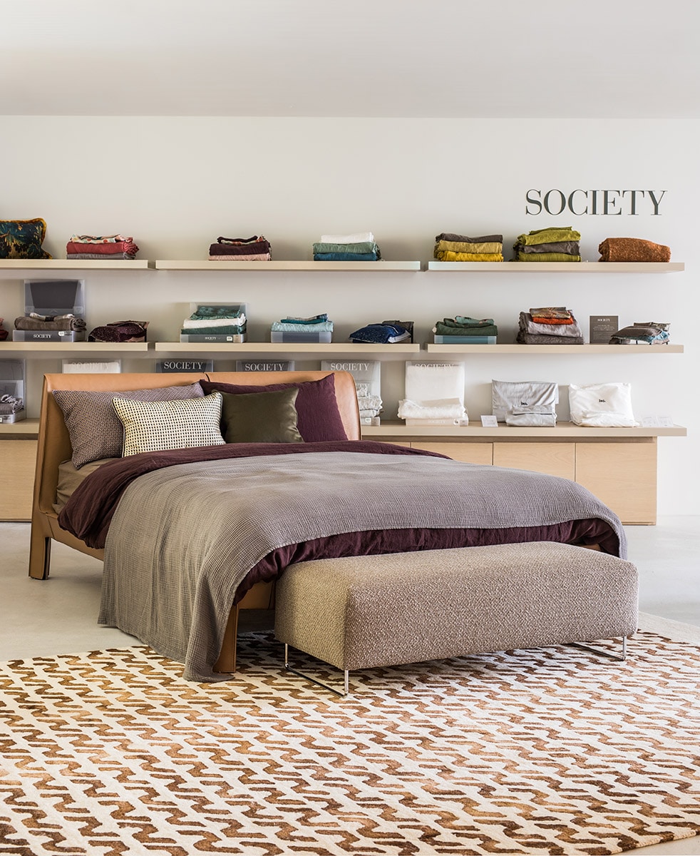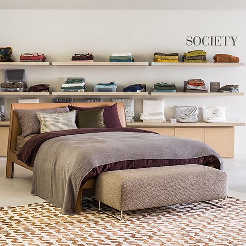 Society Limontaは家を「ドレスアップする」商品を提案しています。年に2回シーズンカラーを発表し、異なる色や素材を組み合わせることで、使う人の個性や理想的な環境をつくるための多様なスタイルが可能です。天然の選ばれた素材を使用し、型破りでありながらも実用的で独自性のある、ラグジュアリーな空間をつくることが出来ます。