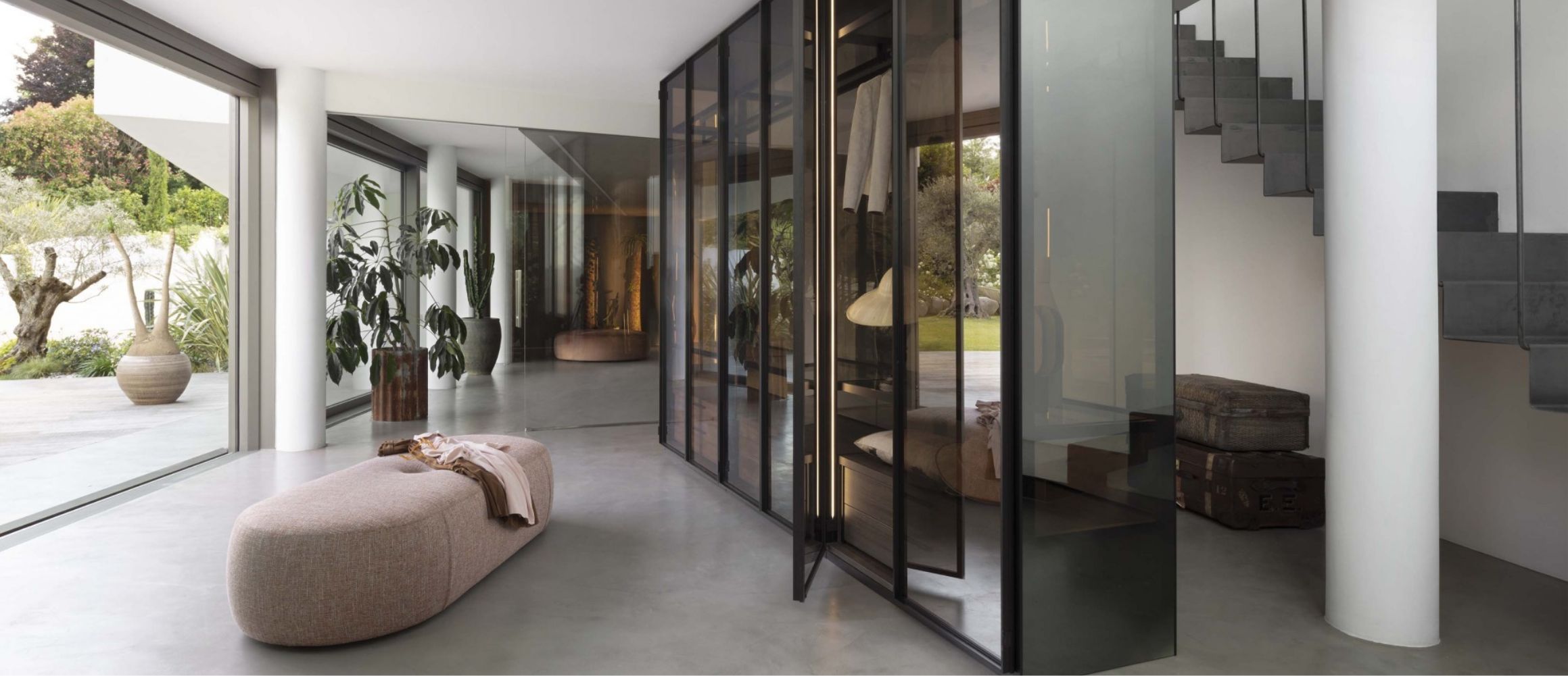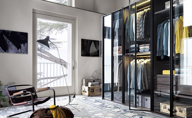CENTIMETROスペースに合わせてデザイン・モジュールを選択し、組み合わせるクローゼット。 扉の素材、開き方も選択でき、自由な構成をもたらします。 ベッドルームのクローゼットとして以外にも、シェルフの組み合わせ次第でリビングやダイニングの収納としてもご使用いただけます。