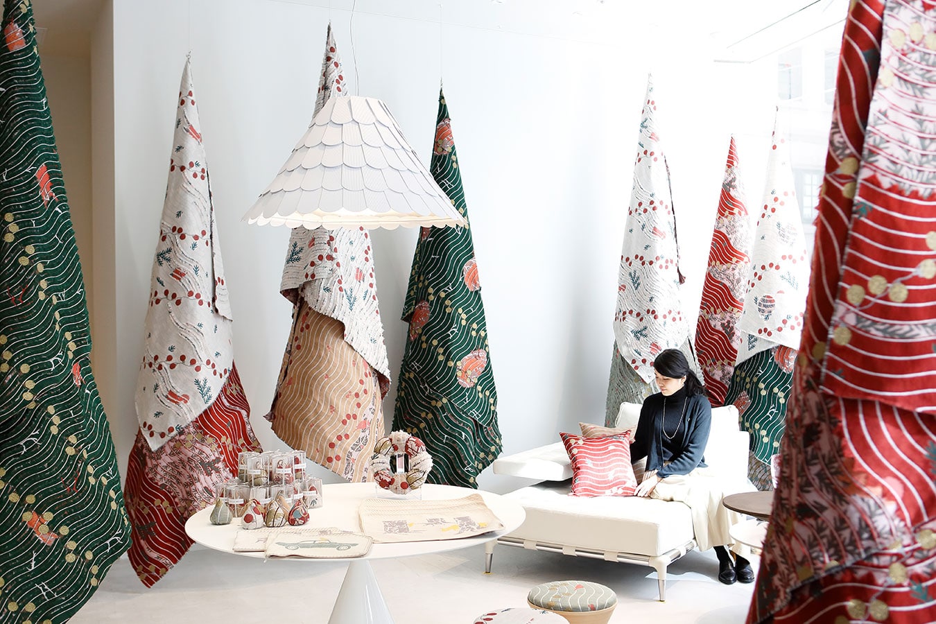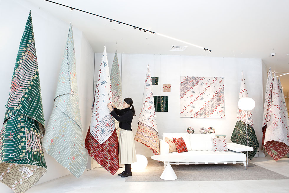 織の組織作りから自身でデザインするユニークなテキスタイルは、ユーザーがハサミを入れることで完成させるなど、新しい発見と楽しい工夫がたっぷりと詰まっていて、今までにない「布との関係性」を築くことができます。11月16日から12月25日まで展開しているインスタレーションへの思い、期間限定アイテムについてなど、氷室友里さんにお話をうかがいました。