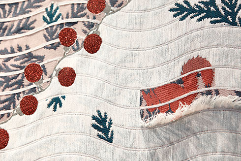 来店されたゲストの方も布にハサミを入れることができるそうですが、そこにはどのような意図があるのでしょうか? - エントランスやウィンドウ近くの布には少し大胆にハサミを入れ、オーナメントのような華やかさを表現しています。そして、並木道を奥に進むにつれ、隠れていた動物が顔を出す、雪の中を駆け抜けている動物が現れるなどをカットで表現しているので、じっくりと見ながらディテールを楽しんでいただけるように配慮しました。