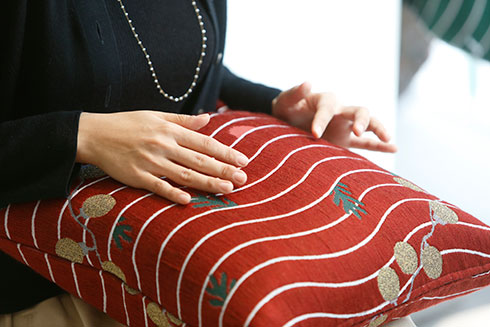 - もちろん、どれもおすすめで気に入っているのですが(笑)、強いていえば、自分で布を切って楽しむことができるクッションやファブリックボードでしょうか。ハサミを入れて自分らしい柄を完成させてプレゼントしてもいいし、大切な人と一緒にカットするのも楽しいですよね。共に創り上げるという時間を共有する幸せを感じていただければ本望です。