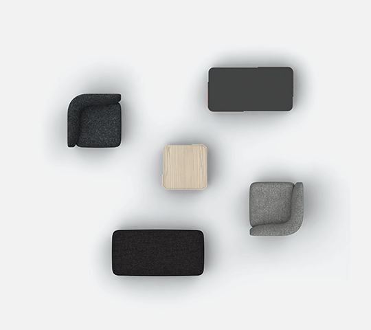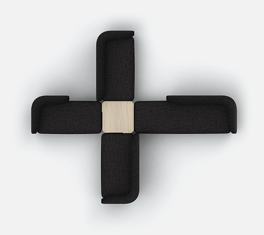 Cross shape or separate modules for the contract market, a 2 or a 3 seater module + a platform for the residential market.