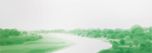 匿名、普通の風景を、緑の単色で描く。緑は、美しく濃い溜まりと、モヤとも見まがう表現で描かれ、それは輪郭を持たず遠くまで幾重にも続いています。馬場作品は、もどかしくも曖昧、しかし既視的で懐かしく、深い記憶の底にある風景を思わせます。言い換えれば夢の中で見る風景にも似て、私たちが今までに多くの風景に触れ囲まれながら、その中からゆっくりと自分の中に沈静させた、かけがえのない風景なのかもしれません。