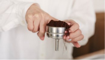 コーヒーは、押さえつけないようにしながら、すり切りいっぱいになるようフィルターにセット。コーヒーと水が適量であることが大切。美味しさのポイントです。付属のレデューサーを使えば、カップ数を調整することも可能。フィルターの底にセットしてから、コーヒーを入れてください。