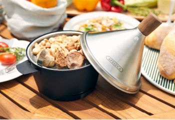 香ばしいナッツやチーズを卓上で気軽に楽しめる薫製器です。小ぶりなサイズなので、カジュアルなおもてなしのSummer Terrace Partyにぴったり。チップ、ウッドの両方に対応できる本格仕様なので、ナッツなどで腕慣らしをしたら、薫製卵や薫製手羽先などにもチャレンジしてみてください。じっくりと燻されていい香がしてくるまでのプロセスもパーティでのごちそうになるでしょう。