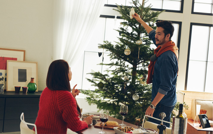 今年のクリスマスは、大切な人と自宅で、のんびりと2人だけの時間を楽しみたいとのこと。もちろん彼女を招く部屋は、肩ひじ張らないリラックスした雰囲気でありながら、デザイナーならではの彼のパーソナリティーを表現する空間にしたい。用意するプレゼントは、一味違う気の効いたセレクトが良い。いつまでも記憶に残る時間を一緒に過ごしたい。そんなこだわりが詰まったJUNさんのクリスマスを紐解いていきましょう。