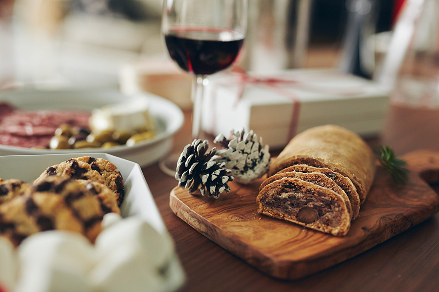 大切な人をもてなす時に、JUNさんが大切にしているのは「時が経っても印象に残るおもてなし」。物作りが得意な彼らしく、サプライズで手作りのカードを渡して、彼女を驚かせたこともあったとか。今回の撮影では、黒のレザーをハート型に切り取り、イラストやメッセージをペイントしたお手製のオーナメントを持参してくれました。自宅に招くからこそできるオリジナルのおもてなしは、アイディアに溢れています。例えば、一緒にクリスマスのオーナメントを飾ったり、料理を作ったり、とっておきのワインを開けてシュトーレンを味わったり。大切な人と同じ時間を共有しながら過ごすクリスマスは、いつまでも記憶に残る素敵な思い出をつくってくれるはずです。
